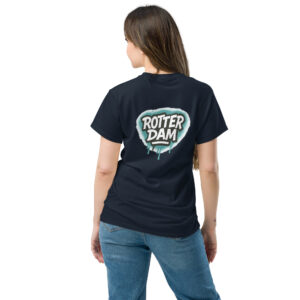 Dit T-shirt brengt het gevoel van de stad samen in één woord: Rotterdam. In graffiti, zoals je het op straat tegenkomt. Niet netjes uitgelijnd, maar met karakter. Voor vrouwen die zich thuis voelen in een stad die altijd doorgaat.